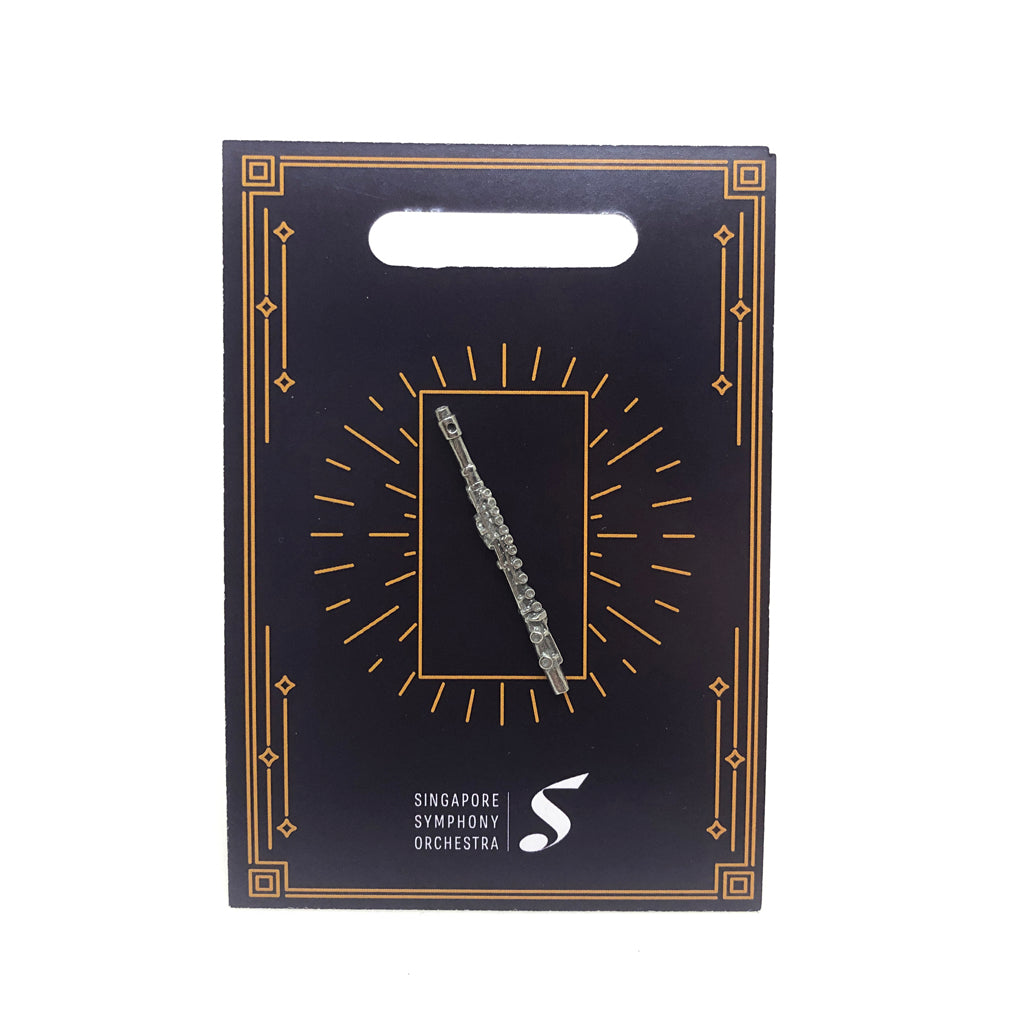 A flute pin on a card stock with music quotes on the back of the card. (Cards are randomly picked)