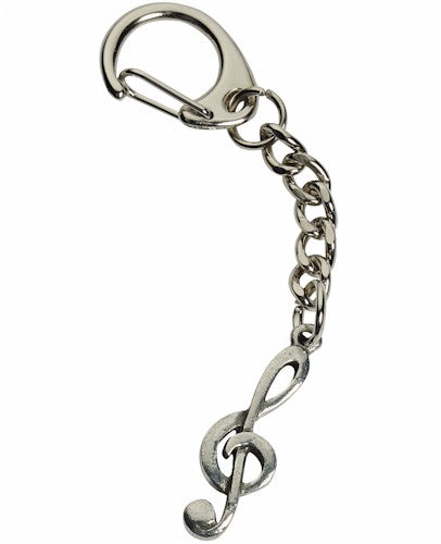 Pewter treble clef on a quality key chain with lobster clasp. Available in large and small sizes.