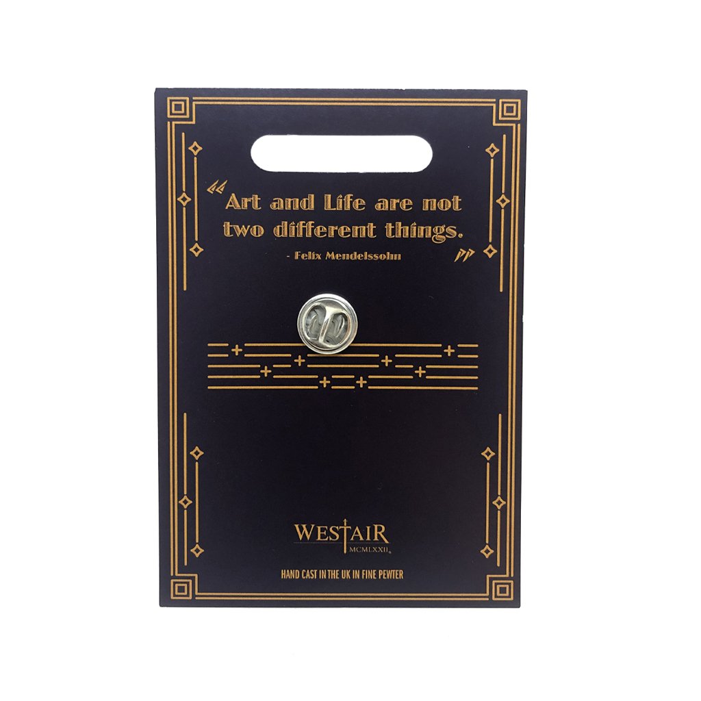 A saxophone pin on a card with one of five different music quotes. Card(s) selected at random with each purchase, subject to availability.