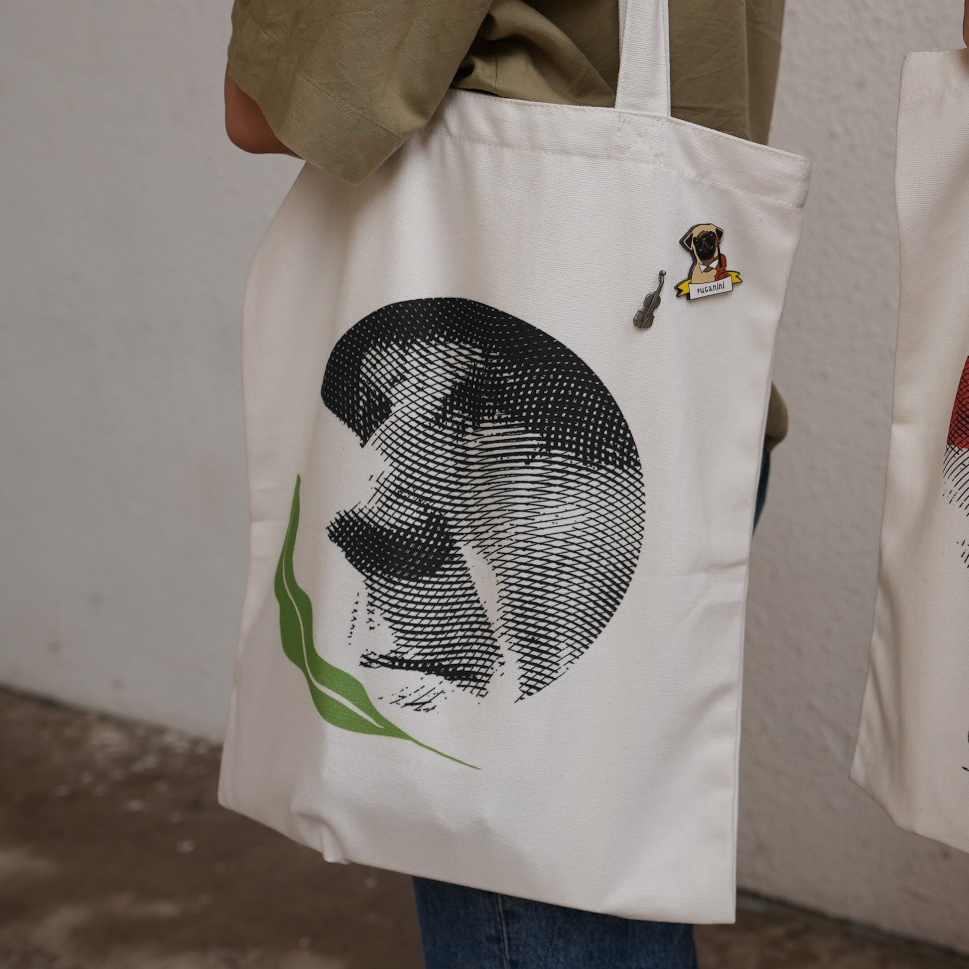The other side of the tote bag features the Singapore Symphony Orchestra logo. The tote bag is coloured off-white outside and inside, with one inner pocket.